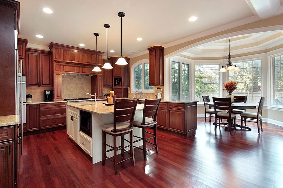 Kayu ek adalah kayu lain yang sangat tahan lama yang digunakan untuk membuat perabot dapur dan lantai. Oak juga merupakan salah satu kayu yang paling indah dan terlihat alami, tetapi juga dapat menguning seiring waktu. Oak dianggap sebagai kayu yang ideal untuk furnitur karena murah, terlihat cantik, dan bertahan lebih lama dari kayu biasa.