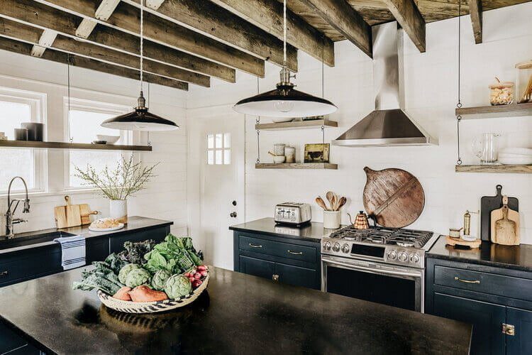 Tampilan pedesaan dan industri pada dapur keluarga yang mudah didekati dan hangat. Ketika dapur adalah jantung rumah, itu berdetak keras. Westchester Cottage oleh Becca Interiors.