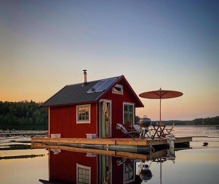 Datang musim dingin, danau membeku dan pondok kecil menjadi tempat yang sempurna untuk mandi es.