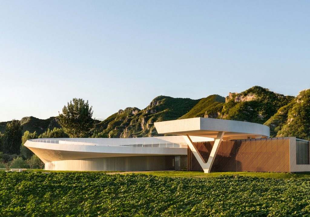 Arsitektur tradisional Tionghoa setempat memengaruhi desain Zibo OCT Art Center oleh Studio Zhu-Pei, yang menampilkan atap beton dan dinding batu.