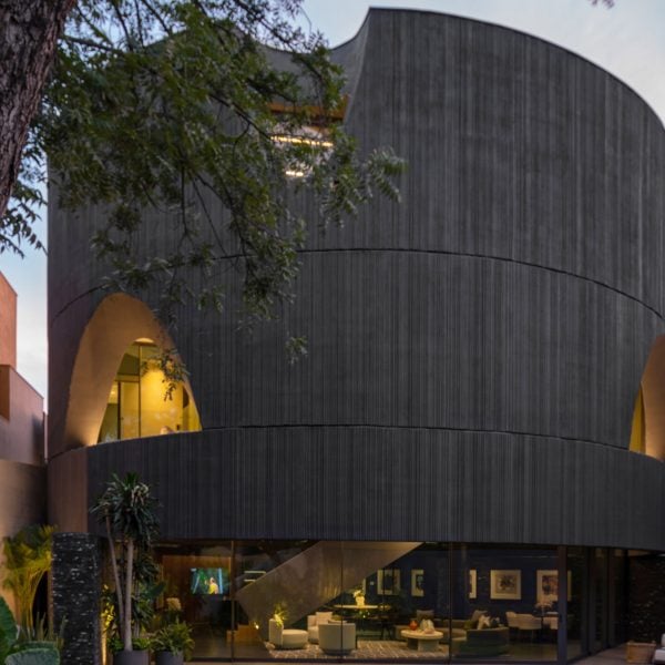 Selesai pada tahun 2022 di San Pedro Garza García, Nuevo León, cangkang beton bertulang bertekstur tiga lantai berfungsi sebagai cangkang untuk rumah seluas 600 meter persegi.