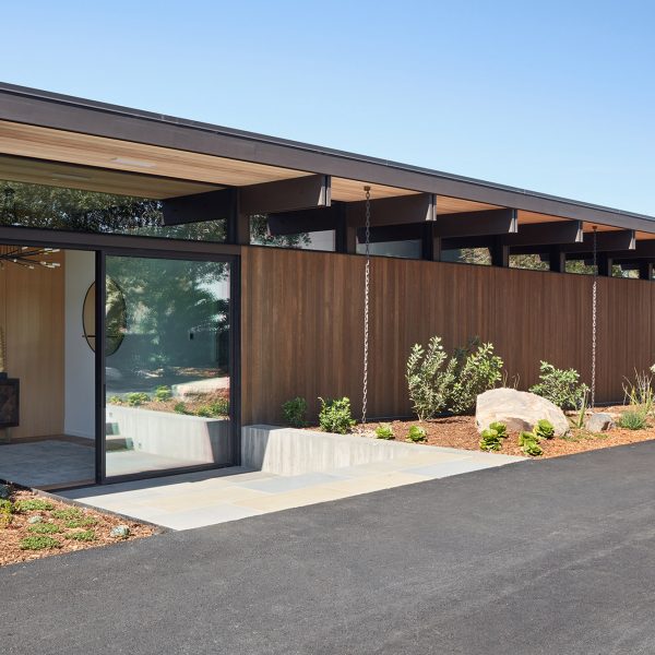 “Desain linier dan ruang tamu yang terbuka dan mengalir menyediakan hampir setiap ruangan dengan akses luar ruangan ke teras yang luas, terlindung dari panas Sonoma oleh overhang yang dalam,” kata tim tersebut.