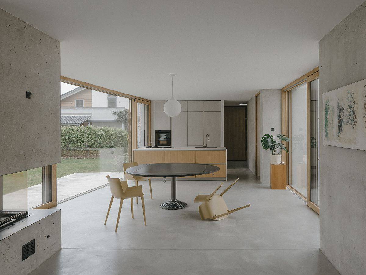 Tertarik dengan Rumah Minimalis Beton? Estetika sederhana, insulasi terbaik, dan fungsionalitas cerdas adalah fitur yang mendefinisikan rumah kontemporer minimal ini di Genestrerio, Swiss. Rumah itu dikonsep dan dihidupkan oleh Montemurro Aguiar Architetti, dengan mengingat area hutan indah yang mengelilinginya. Ini adalah pemandangan hijau di luar yang menjadi titik fokus dari kehidupan terbuka. Pintu kaca geser dan jendela besar dari lantai ke langit-langit membawa suasana luar ke dalam dengan gaya yang tidak berubah. Dan dekorasi di dalam rumah sengaja dibuat minimalis untuk menonjolkan visual ini. Kurangnya warna di bagian dalam juga membantu dalam menempatkan fokus pada lanskap eksterior.