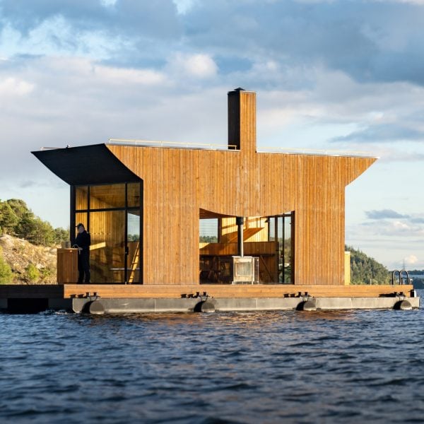 Studio Swedia Sandellsandberg telah menyelesaikan Big Branzino, sauna terapung yang dirancang untuk mengapung dengan latar belakang kepulauan Stockholm yang terus berubah.