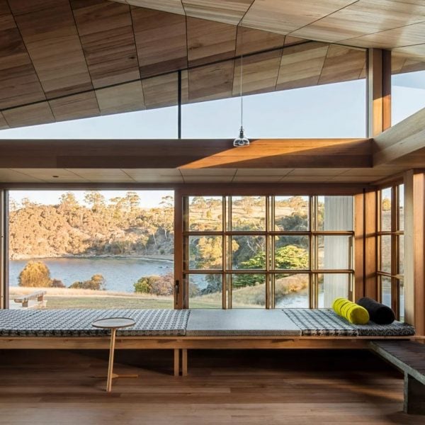 Studio Australia Arsitek John Wardle telah memperbaiki pondok papan cuaca di Tasmania ini, yang awalnya milik arsiteknya, kapten pelabuhan Kapten Kelly, pada tahun 1840-an.
