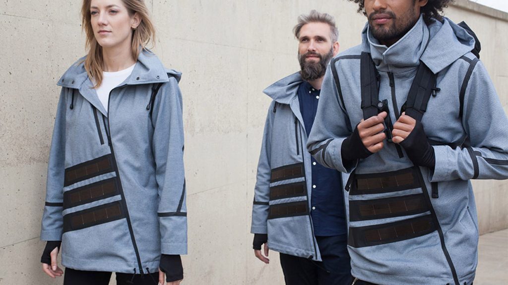 Tiga panel surya fleksibel dipasang di seluruh permukaan jaket untuk memungkinkan penggunanya tetap memakai ransel tanpa menghalangi pengumpulan energi panel. Jaket ini dilengkapi dengan bank daya yang menyimpan energi yang terkumpul sepanjang hari dan juga memiliki sifat tahan air.
