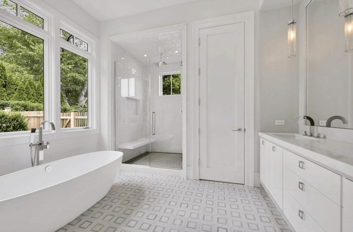 Jangan khawatir jika Anda memiliki jendela di jalan. Memasukkan jendela ke dalam bilik shower Anda sebenarnya dapat memberikan pemandangan yang indah untuk ketenangan dan kecerahan. Tambahkan bangku pancuran di bawah jendela dan nikmati cahaya alami yang mengalir ke pancuran Anda.