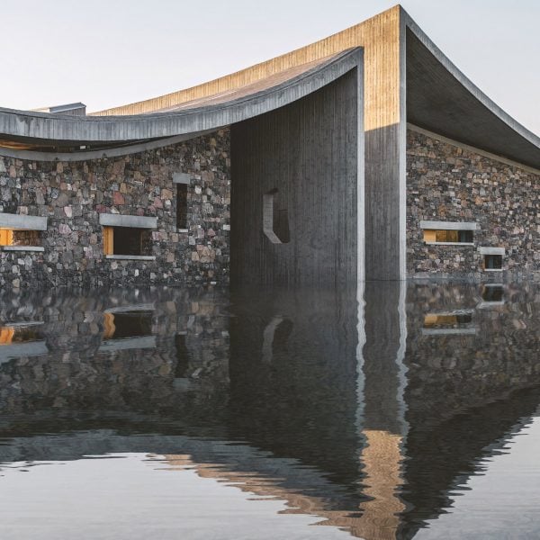 Menggunakan tata letak ini, Studio Zhu-Pei yang berbasis di Beijing menyelenggarakan serangkaian ruang pameran dan acara menjadi empat blok batu dan beton di sekitar taman pusat dengan pepohonan, tempat duduk, dan teras yang teduh.
