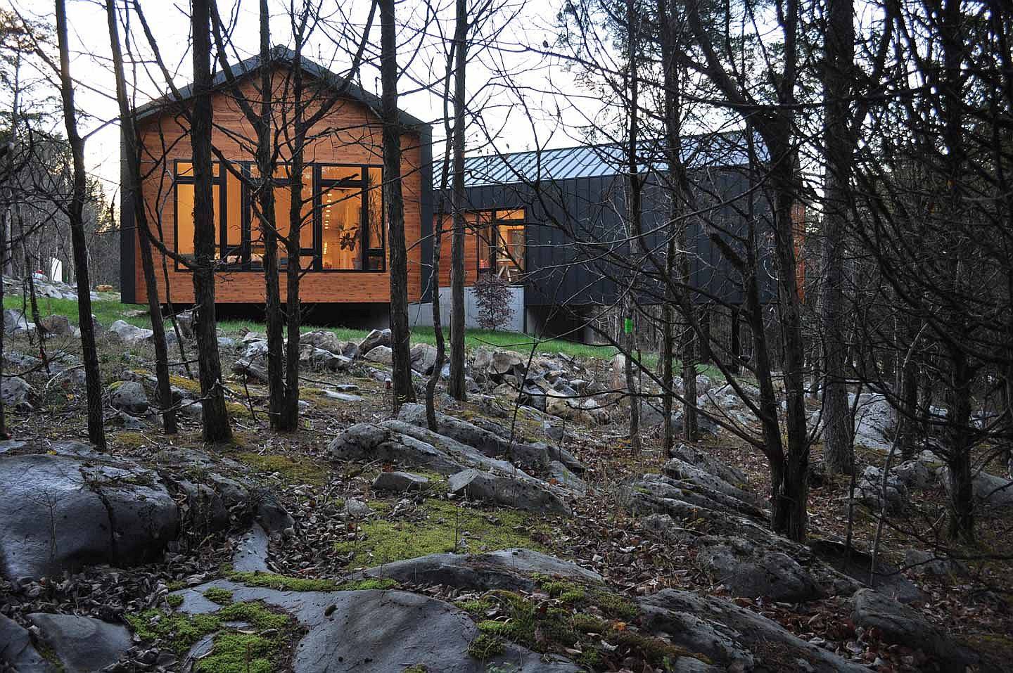 Sebuah lorong terbuka menuju melalui bagian tengah rumah ini dan menghubungkan bagian depan dengan bagian belakang. Transisi antara ruang publik dan pribadi berjalan mulus, karena dinding kaca dan jendela besar memperluas ruang interior ke luar. Lapisan logam jahitan berdiri di bagian luar serta dinding kayu dan skema warna yang lembut menciptakan keseimbangan yang bagus antara yang kuat dan yang nyaman. Dekorasi modern dan fungsionalitas cerdas menambahkan sentuhan akhir pada rumah ini, yang dikelilingi oleh hutan cedar yang lebat. [Photography: Bruce Cole Photography]