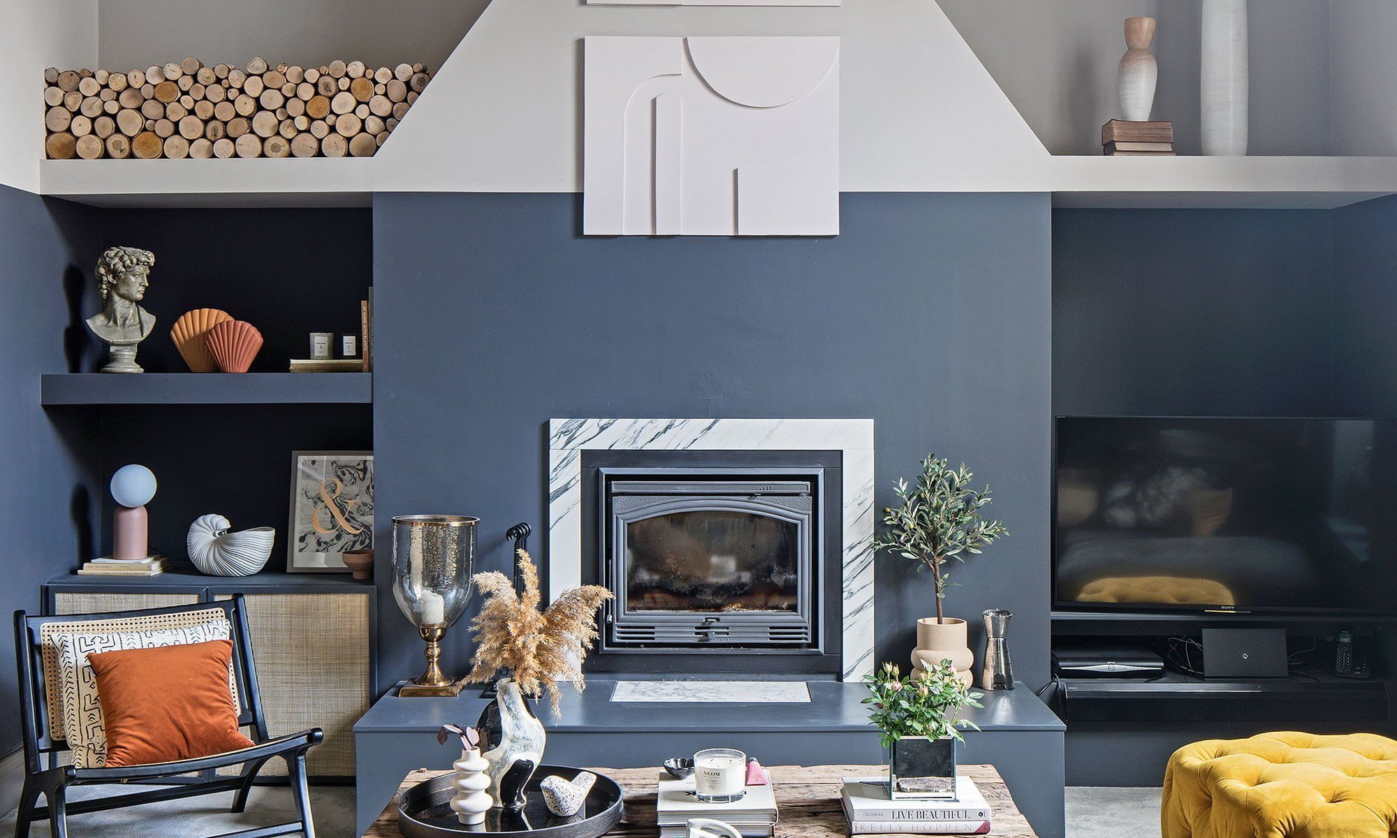 ‘Ruang tamu awalnya dicat netral pucat dengan ceruk merah muda tua yang menurut saya tidak berpengaruh apa-apa untuk ruangan itu,’ kata pemiliknya. ‘Sebaliknya kami mengecat bagian bawah ruangan dengan warna abu-abu tua yang terasa sangat hangat dan nyaman. Ini adalah ruangan yang sempurna untuk bersantai dan menonton film bersama, terutama di musim dingin saat tungku kayu menyala.’