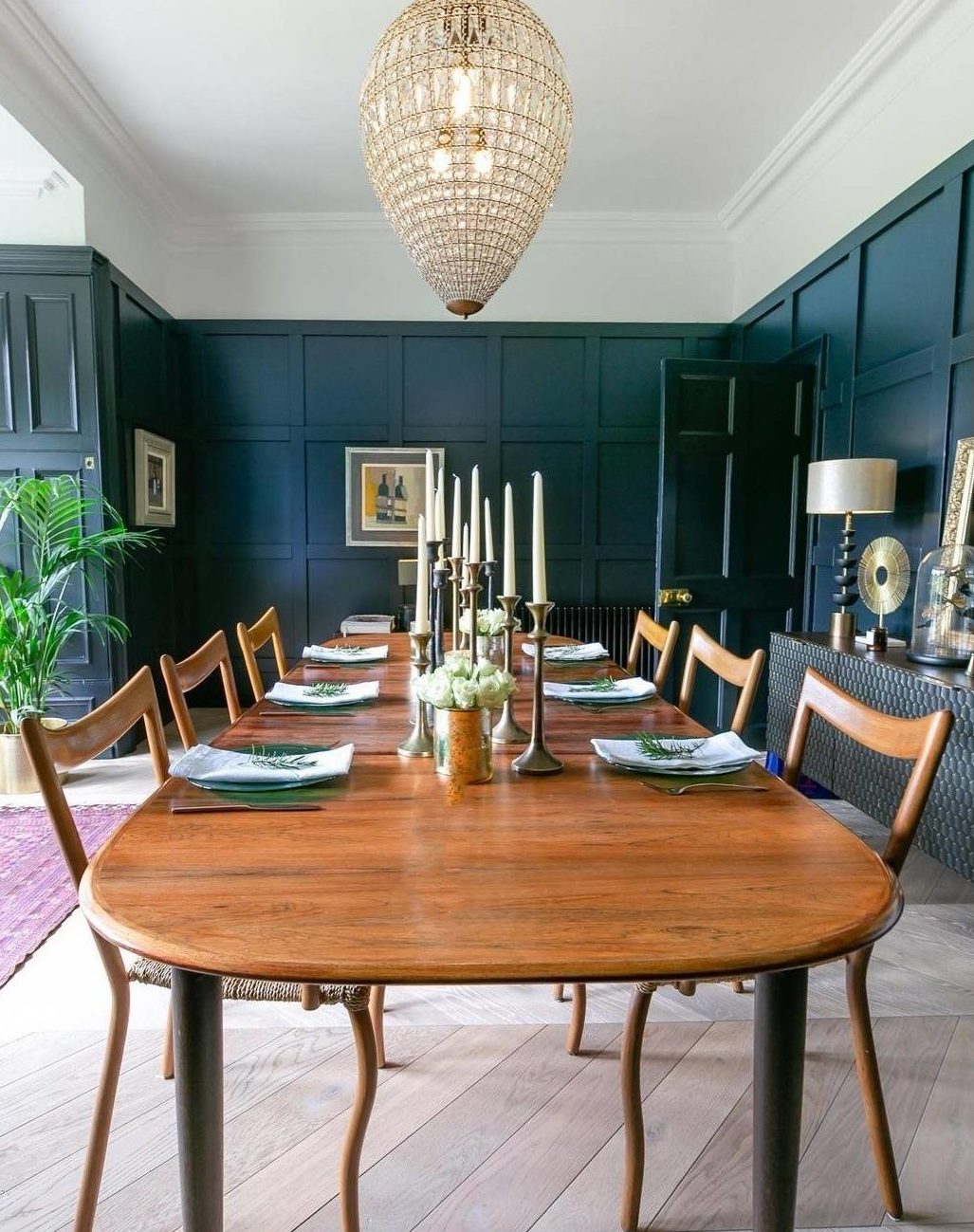 Meja makan oval juga merupakan bentuk klasik untuk meja makan. Ini sangat cocok di interior kecil. Ini sosial dan membuat menambahkan tamu menit terakhir menjadi mudah.