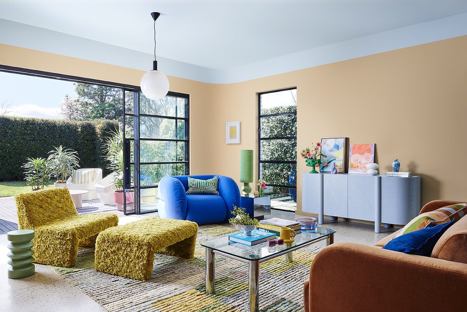 Palet Revive dengan sempurna menangkap suasana hati dengan warna-warna cerah termasuk warna biru yang kaya (Dulux Integra), hijau yang hidup (Dulux Diorit), dan lilac yang unik (Dulux Perplexed) dipasangkan dengan pola skala besar, furnitur yang menggairahkan, dan karya seni abstrak yang berani di dalam ruangan yang telah direnovasi. ruang santai. “Jika Anda belum pernah beralih dari warna putih dan netral sebelumnya, menggunakan warna jenuh seperti ini bisa terasa menakutkan, tetapi sebenarnya tidak ada yang perlu ditakuti,” kata Bree.