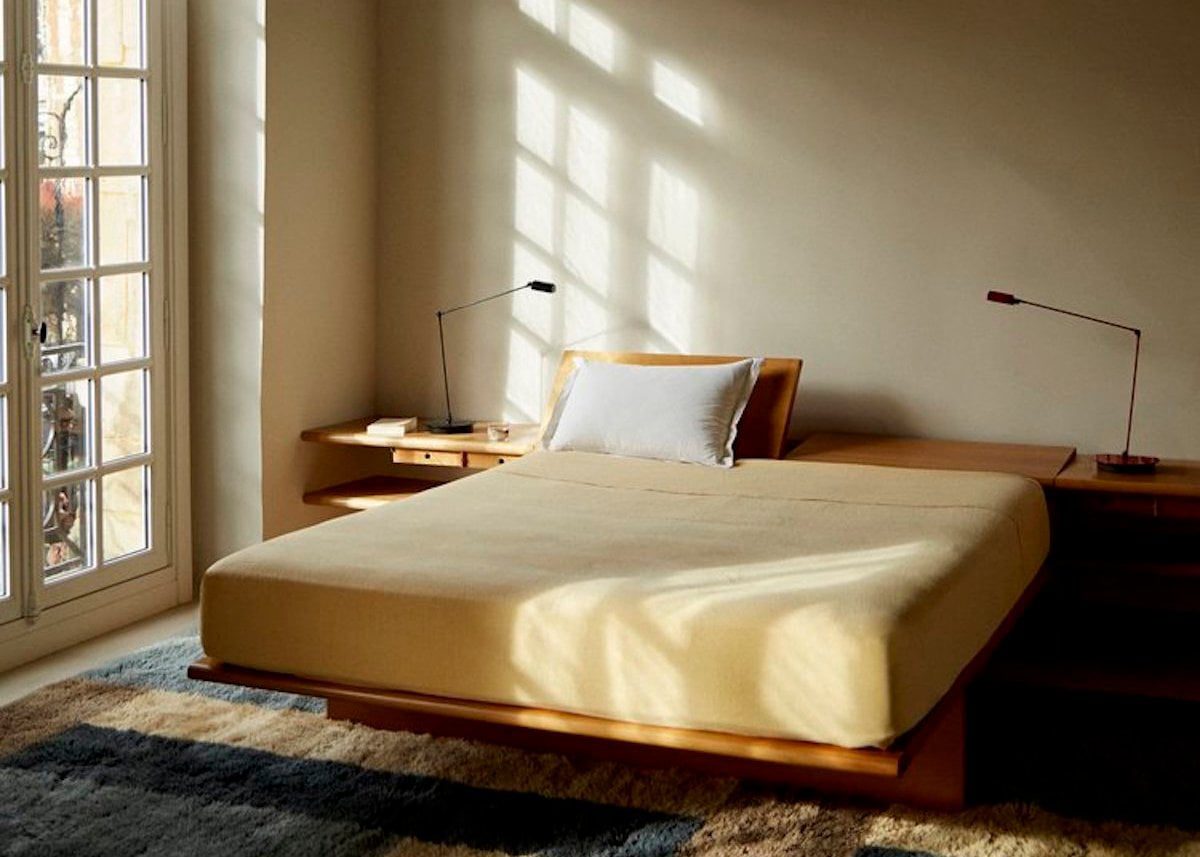 Jika kita berbicara tentang kamar tidur yang tenang, hangat, dan mengundang yang mempromosikan istirahat, ini adalah contoh utama. Gaya dan getarannya langsung terlihat seperti hidup dan ramah yang menurut saya ideal untuk kamar tidur. Saya suka bagaimana Kate Marker mengapit dua sconce di atas kepala tempat tidur, menciptakan simetri yang mudah diterima mata. Balok kayu yang terbuka menarik perhatian Anda sehingga Anda dapat menghargai langit-langit tinggi dan lampu gantung kuningan cantik yang mengikat detail kuningan di seluruh ruangan. Jika ada karya seni di atas tempat tidur, itu pasti akan baik-baik saja, tetapi saya sangat menghargai pilihan untuk menjaga agar dinding tetap kosong. Ini menonjolkan getaran minimal yang tenang dan pada catatan praktis, ramah anggaran super (yang merupakan alasan utama lain mengapa saya menyukai tren ini).