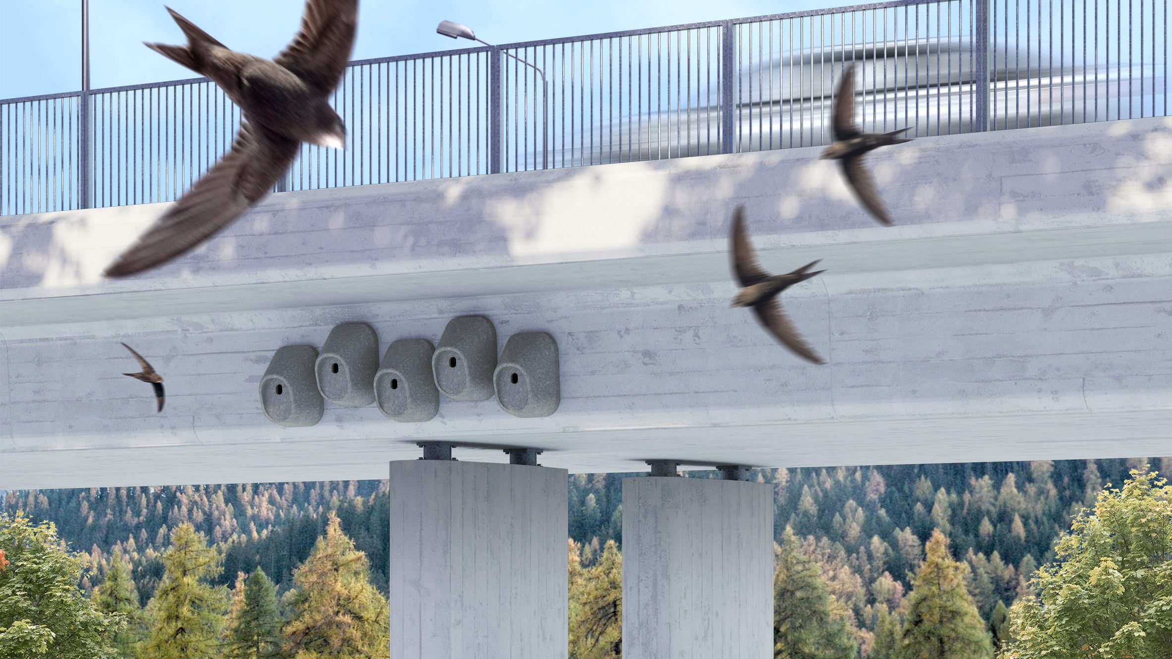 “Bantuan sarang Obru menawarkan tempat berlindung baru di jembatan beton dan dipasang menggunakan lubang jangkar yang sudah ada.